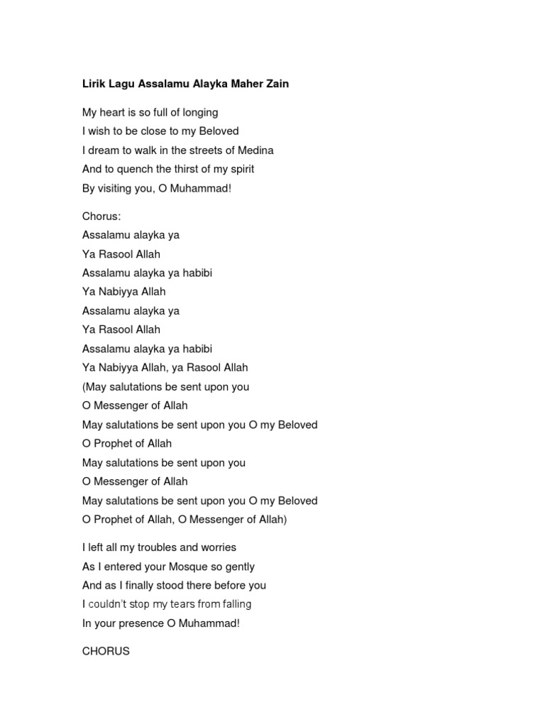 Lirik Lagu Assalamu Alayka Maher Zain Pdf